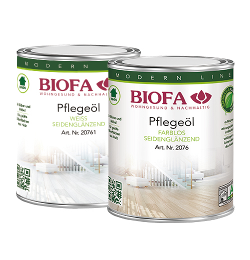 Das BIOFA Pflegeöl weiß eignet sich besonders für helle Hölzer.