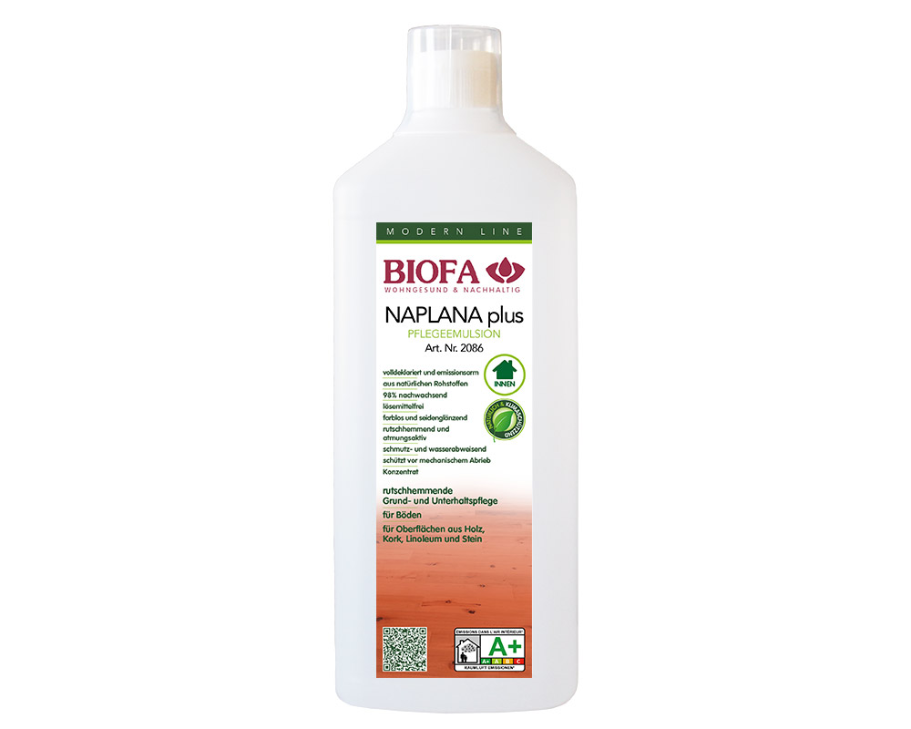 BIOFA Intensivölreiniger ist ein Grund- und Ölreiniger für Böden aus Holz, Kork und Linoleum, die mit Universal Hartöl 2044, Hartwachsöl 2055, Parkettöl 2059, Möbelöl 2049 und Arbeitsplattenöl 2052 behandelt sind.