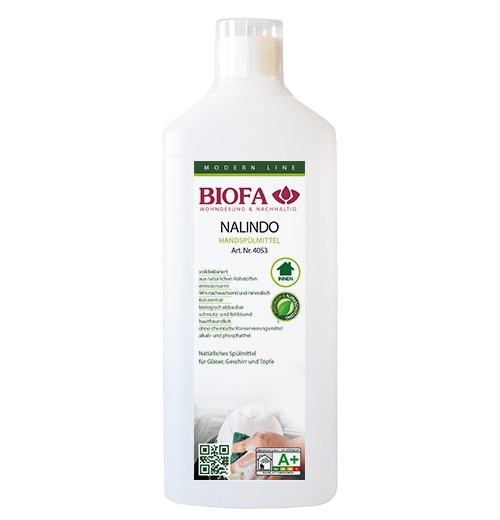 Das NALINDO Handspülmittel 4053 von BIOFA ist ein sehr ergiebiges, hautfreundliches, schmutz- und fettlösendes Spülmittel Konzentrat aus natürlichen Rohstoffen.